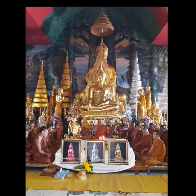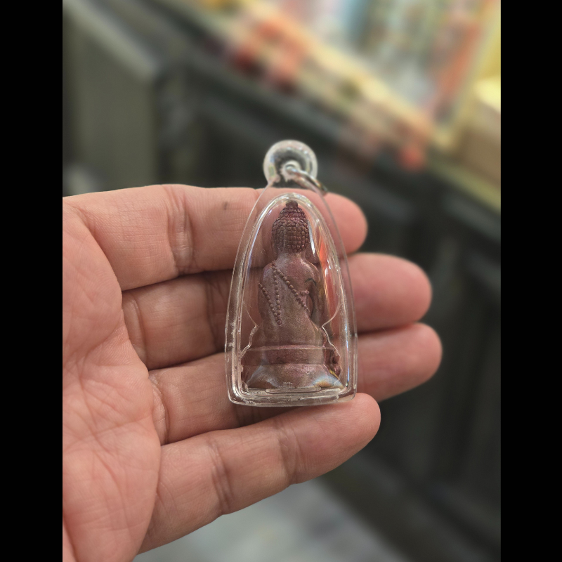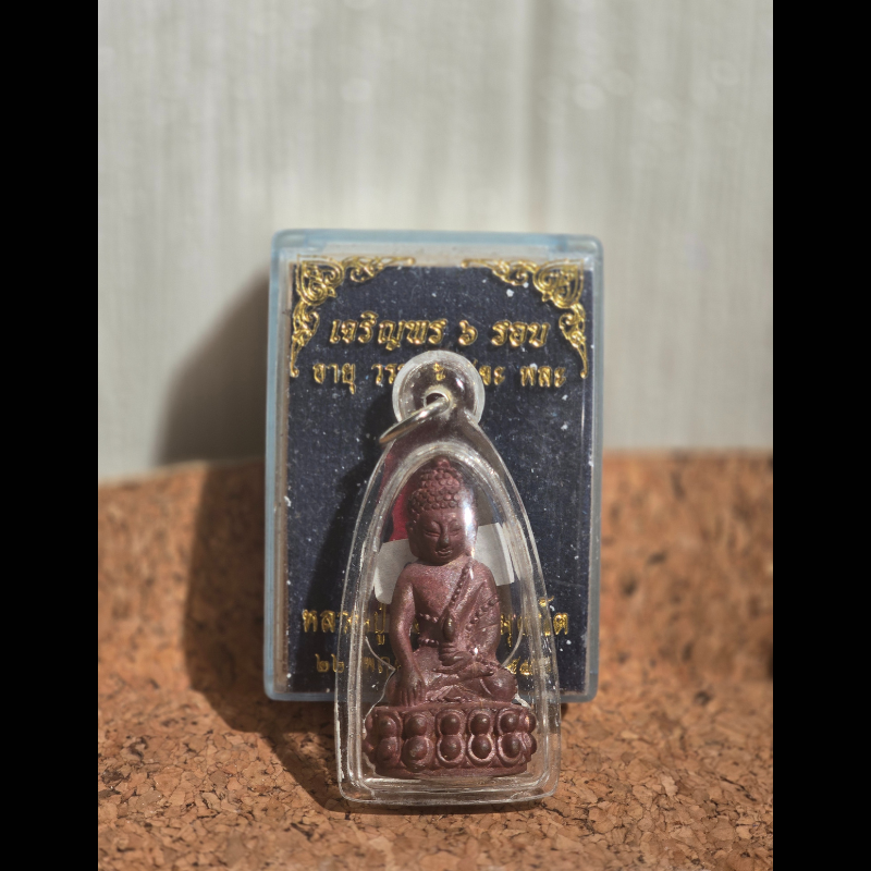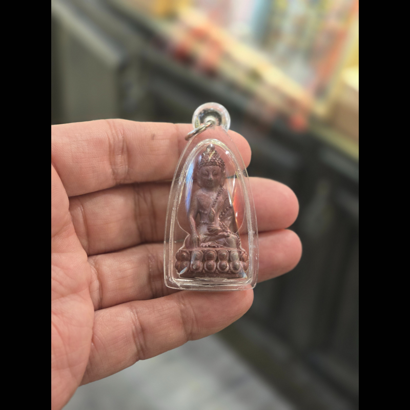 此尊藥師佛是龍婆珠在72歲壽辰時本意構思,命名為”咋梁配6輪”,中文意思是「六輪藥師佛」。\n\n並用籌集回來的資金為屈求打惡烏冬配興建佛堂、佛閣和佛塔。此藥師佛以龍婆彭的“帕勁本咋奇李”的模具作為藍本,造型極具佛教藝術設計氣息。而每尊藥師佛也混合了多種古舊牌碎,包括混合了屈帕他栢龍寺廟牌碎。此批藥師佛做了多種材質,而此尊紅銅材質呈現瓦紅色相當特別。\n\n龍婆珠是一位具修行並務的師傅,深受廊磨拉威縣信徒的崇敬。只因師父為公共事業做出了巨大貢獻,包括用籌集的善款用作道路和蓄水壩的建造。\n\n藥師佛是佛教東方淨琉璃世界的教主,全稱為「藥師琉璃光如來」。 祂因在因地(過去世)發十二大願,誓願為眾生解除病苦與精神痛苦,因此被尊稱為「大醫王佛」。 藥師佛法門的修持主要用於消災延壽、祈求健康與平安,並能幫助眾生化解業障,獲得身心安樂。\n\n佛牌配防水外殼,附原裝廟盒\n\n注意:所有佛牌聖物不作口頭預留,供請以付供金作實\n\n海外朋友接受paypal,微信支付,支付寶\n\n歡迎查詢\n\n地址:香港銅鑼灣希慎道15-31號/ 蘭芳道2-6號 solo蘋果商場地庫6A店\n\ntel/whatsapp 按此:62352828\n\nwechat: